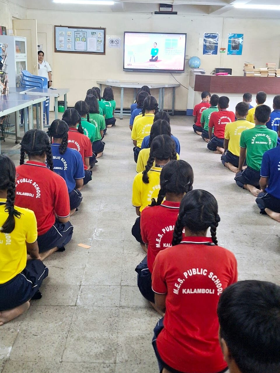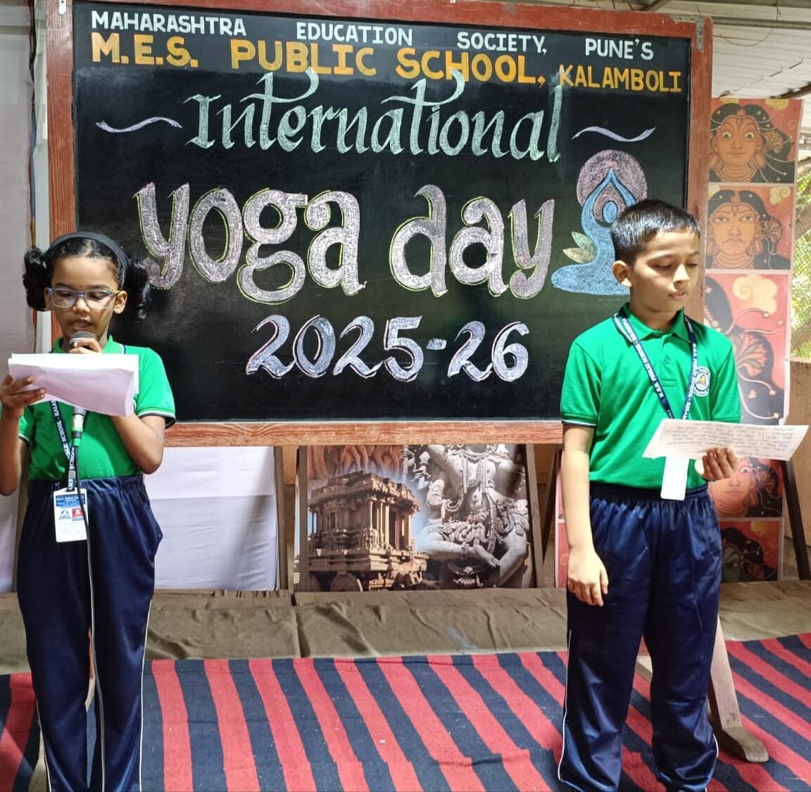 11th International Yoga Day was celebrated in M.E.S Public School, Kalamboli on 21st June 2025. Students of our school were welcomed and briefed about this year's theme, 'YOGA FOR ONE EARTH, ONE HEALTH'. Thougthful speeches were delivered by Anushka Patil from std IX A, Master. Aadit Firodiya and Miss. Sanvi Gorad from std IV B. Students performed various asanas as guided by our PT teachers, Mr. Dnyaneshwar Kank and Ms. Pooja Jagtap. The significance of inculcating Yoga in our daily routine was also highlighted by PT Sir. The students of pre primary, primary, secondary and teachers participated with lot of energy and enthusiasm. The program concluded with the promise to integrate Yoga in our daily lives.