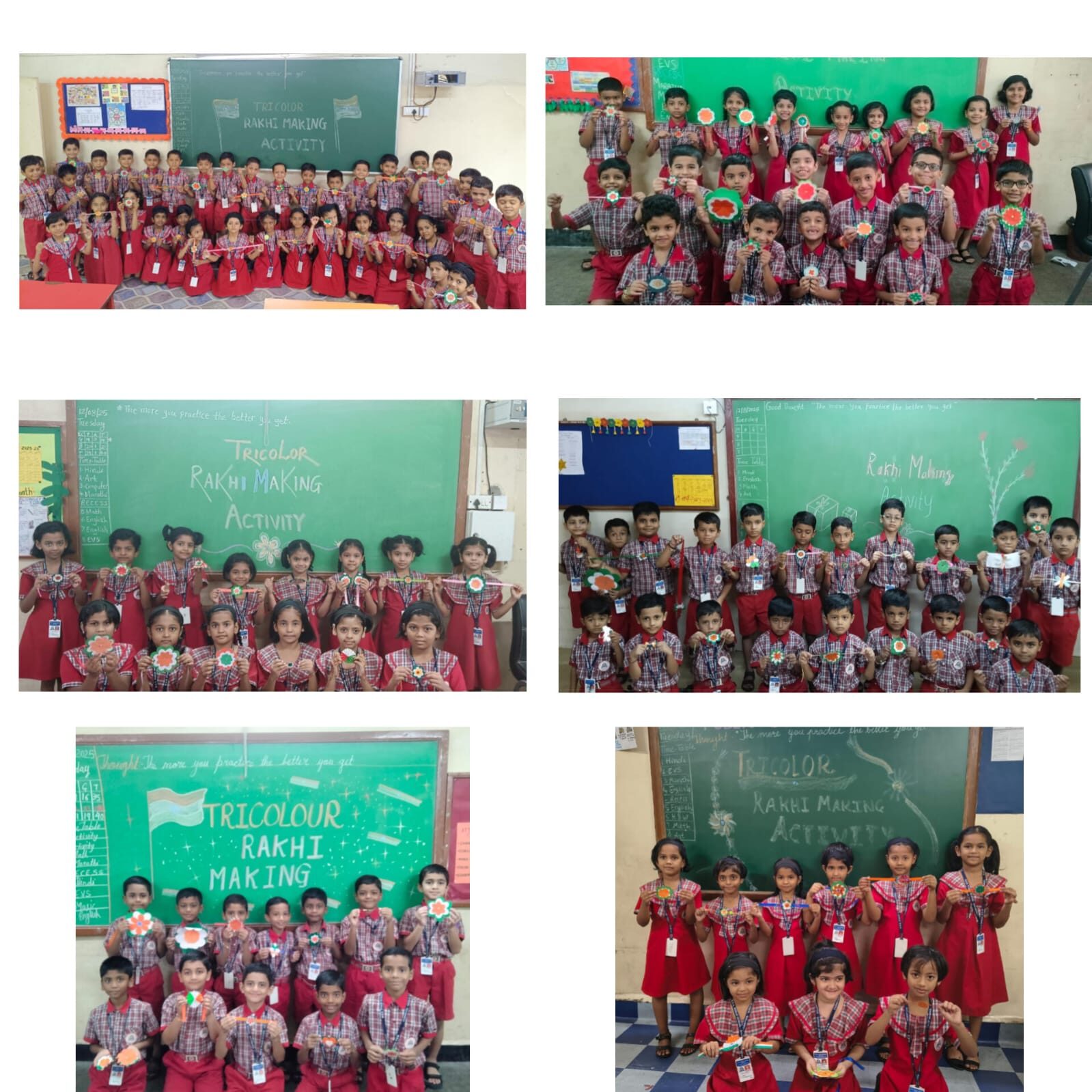 Tricolour Rakhi Making Activity for Std I and II was conducted, in which beautiful tricolour-themed rakhis were prepared.