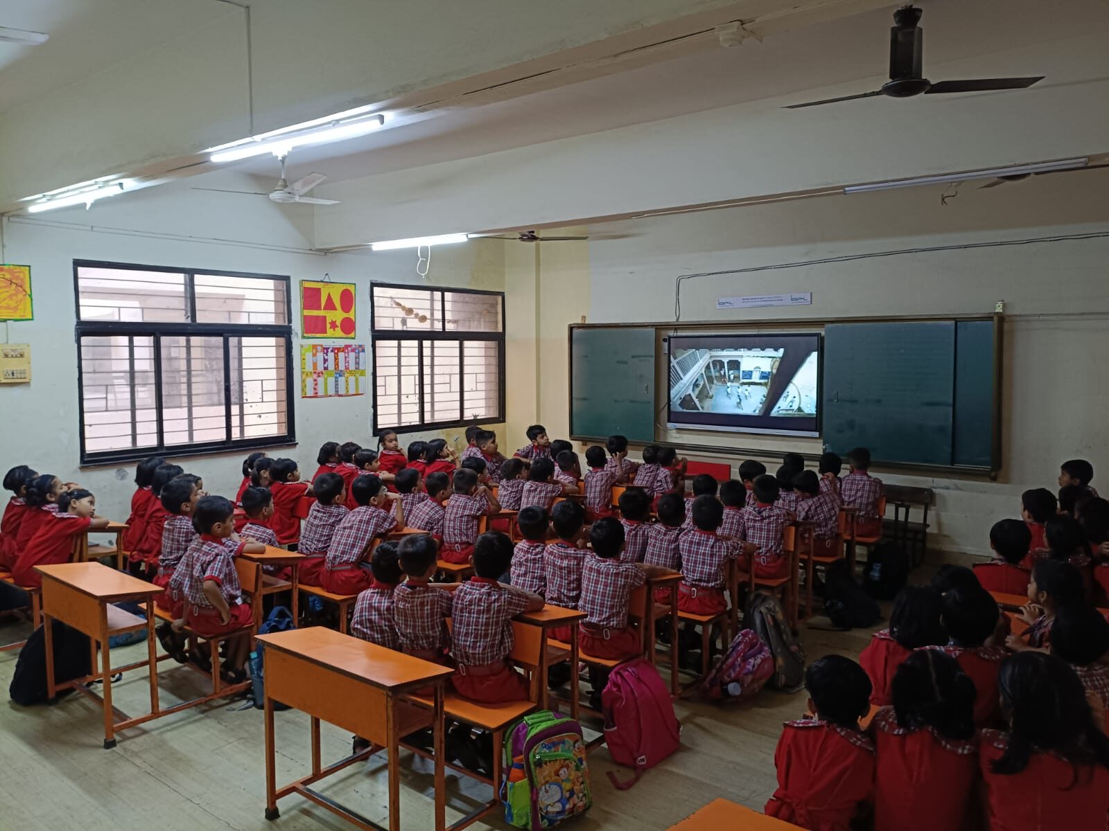 On the occasion of August Kranti Din (Quit India Movement Day), students from Std V to X were shown a movie highlighting the significance of the historic Quit India Movement initiated by Mahatma Gandhi in 1942.