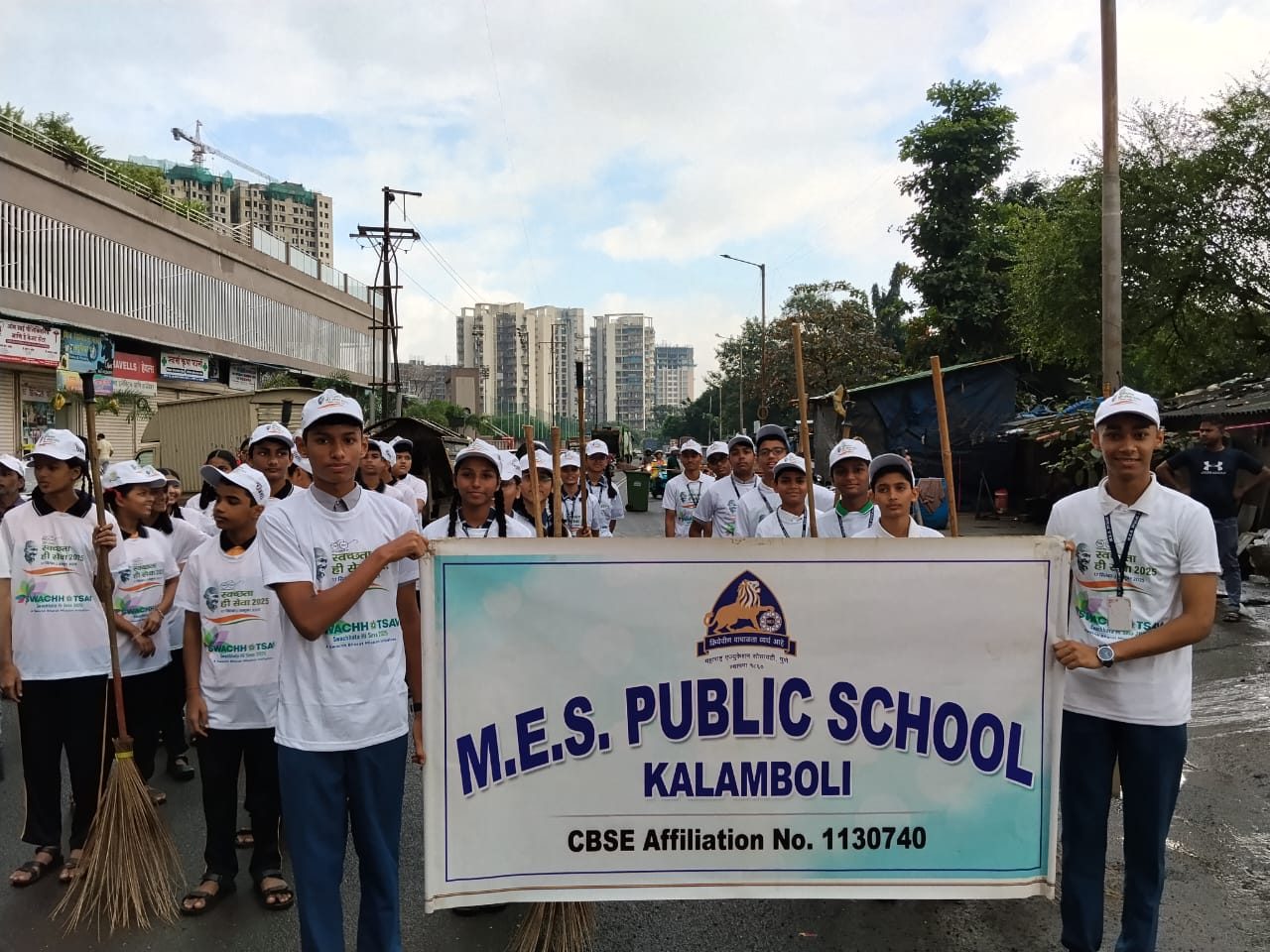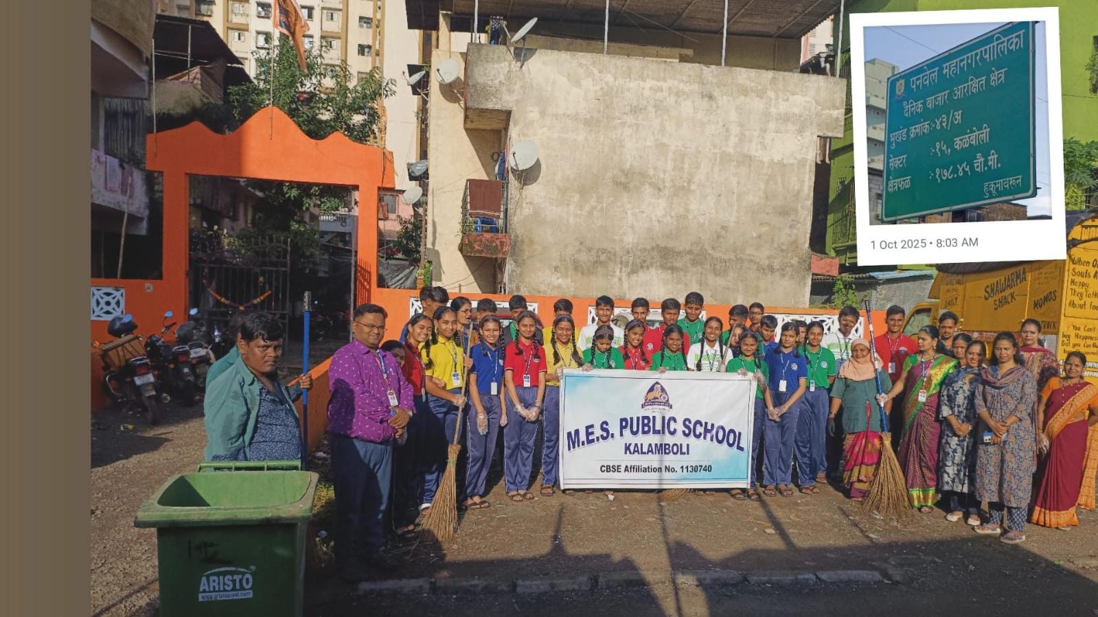 M.E.S. Public School, Kalamboli, the drive was carried out on 1st October, 2025, in the the areas of Kalamboli, Mhasasar Talav and Dainik Bazaar, in which students, eco club members, teachers, sevikas and sanitation workers were actively involved.