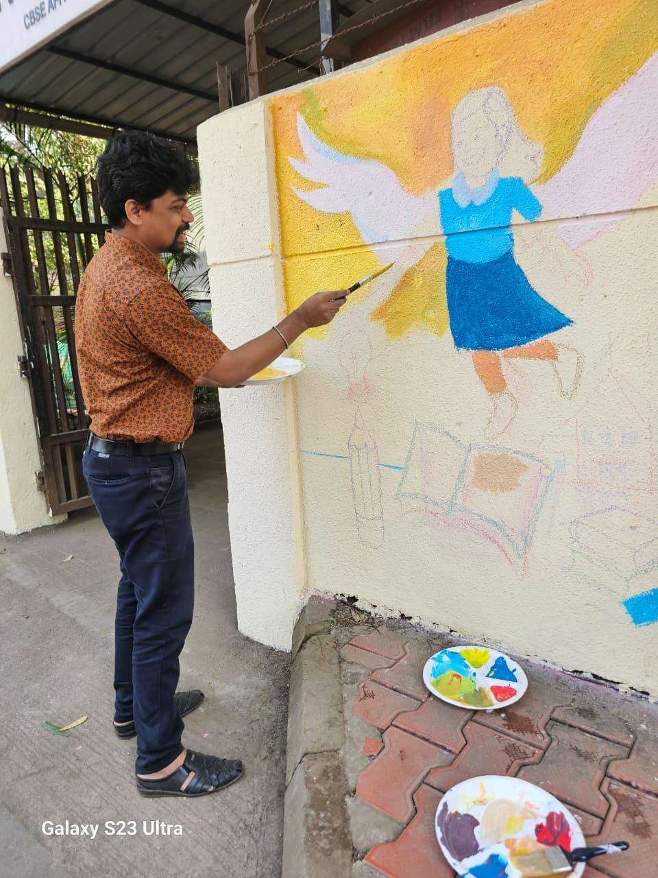 Under the guidance of our respected Principal Ma’am and Art Teacher, Mr. Jayesh Salvi, a team of enthusiastic teachers and students took the initiative to paint the outside walls of the school. The main objective was to beautify the surroundings and convey meaningful social messages to the community.