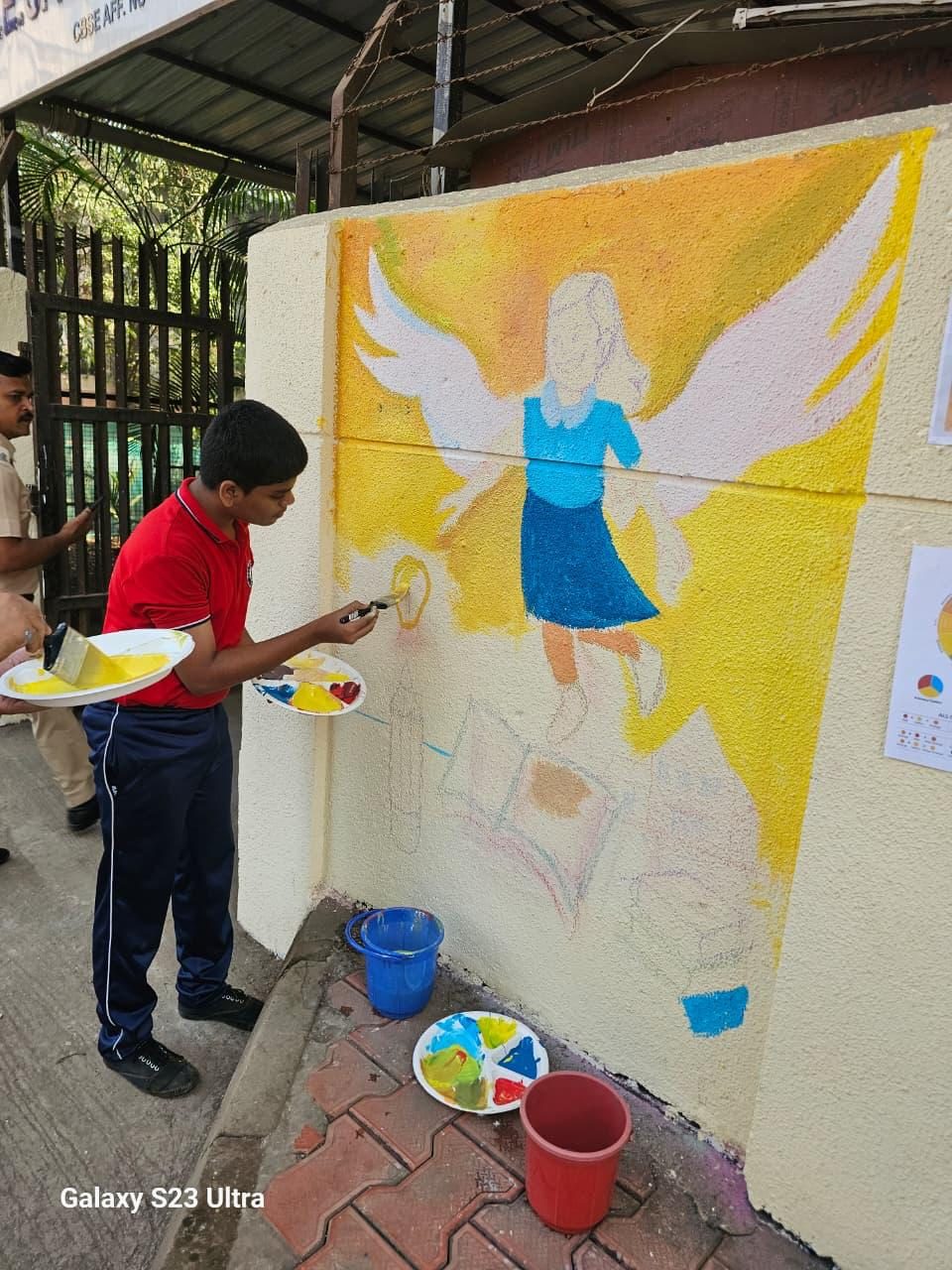 (Outside School Wall painting) The activity of combining art with awareness, to make a valuable learning experience for all involved was conducted by M.E.S. Public School Kalamboli. (10.11.2025 - 15.11.2025)