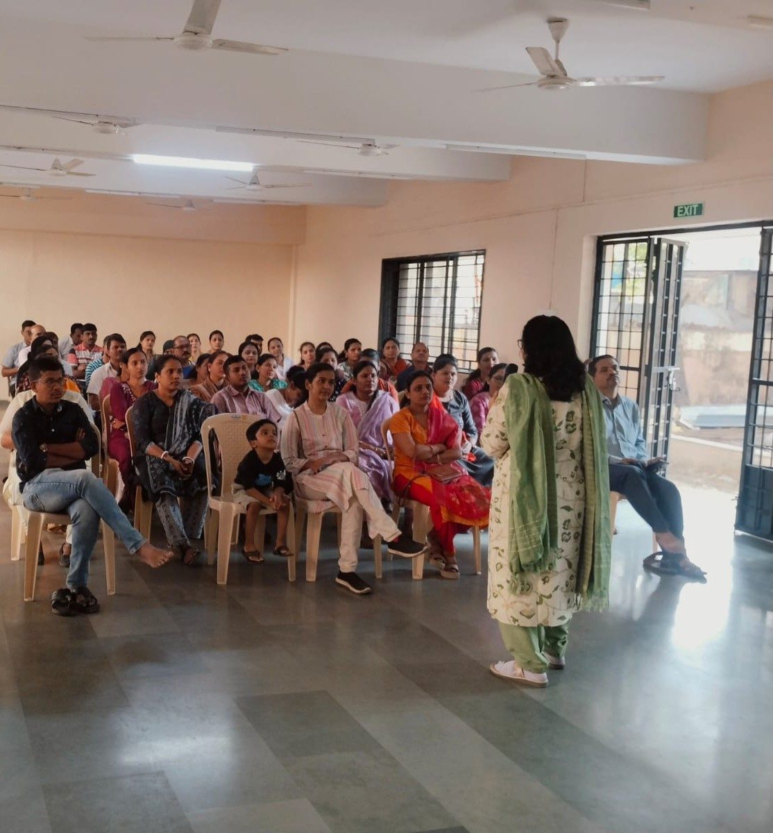 In this workshop, she guided parents on how to understand and deal with their children. She asked parents about the common problems they face while raising children of this age group. She explained the four developmental levels—physical, emotional, mental, and social. She highlighted that children go through various changes at each level, and if parents help and guide them appropriately, they will grow well. The most important message she emphasized was: “Be a friend, not a controller.”She also discussed the do’s and don’ts for parents. In the don’ts, she explained the concept of giving “दूध, तूप, शिरा, मासा” . In the do’s, she encouraged parents to give love and respect, be a friend, provide a healthy environment, focus on proper diet and hygiene, encourage exercise, and keep themselves updated.